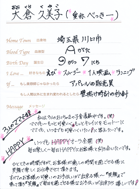 | トップページ | プライス | キャンペーン | アクセスマップ | サロンコンセプト | スタッフ紹介 | ヘアスタイル | メンズメニュー | ブログ ネット予約 | ヘアセットスタイル | まつ毛エクステ | ヘアドネーション | スタッフ募集 | facebook | Twitter | YOU TUBE | リンク | サイトマップ |